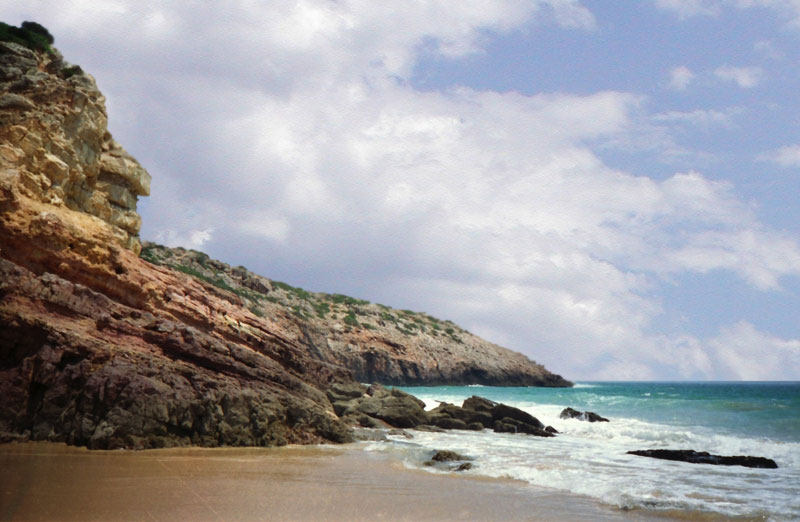Ausgangspunkt ist ein gescanntes Foto, das vor vielen Jahren mit einer Analogkamera aufgenommen wurde. Leider war das Negativ ziemlich beschädigt, was sich vor allem im Himmel bemerkbar macht.