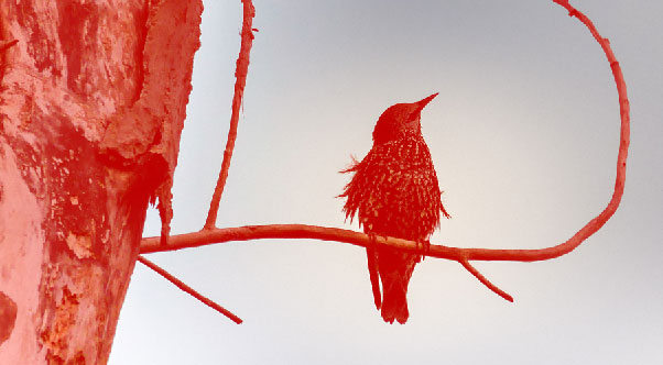 Zur Freistellung von Objekten können Sie auch den Maskierungsmodus, vor allem zum Freistellen von komplexen Objekten wie z.B. Haare, sowohl im Photoshop als auch in Gimp benutzen. Stellen Sie zunächst mit den üblichen Freistellungswerkzeugen (Auswahlrechteck, Auswahlkreis, Lasso, Zauberstab) das Objekt frei. Wählen Sie nun den Maskierungsmodus. Sie erhalten dann folgendes Bild: